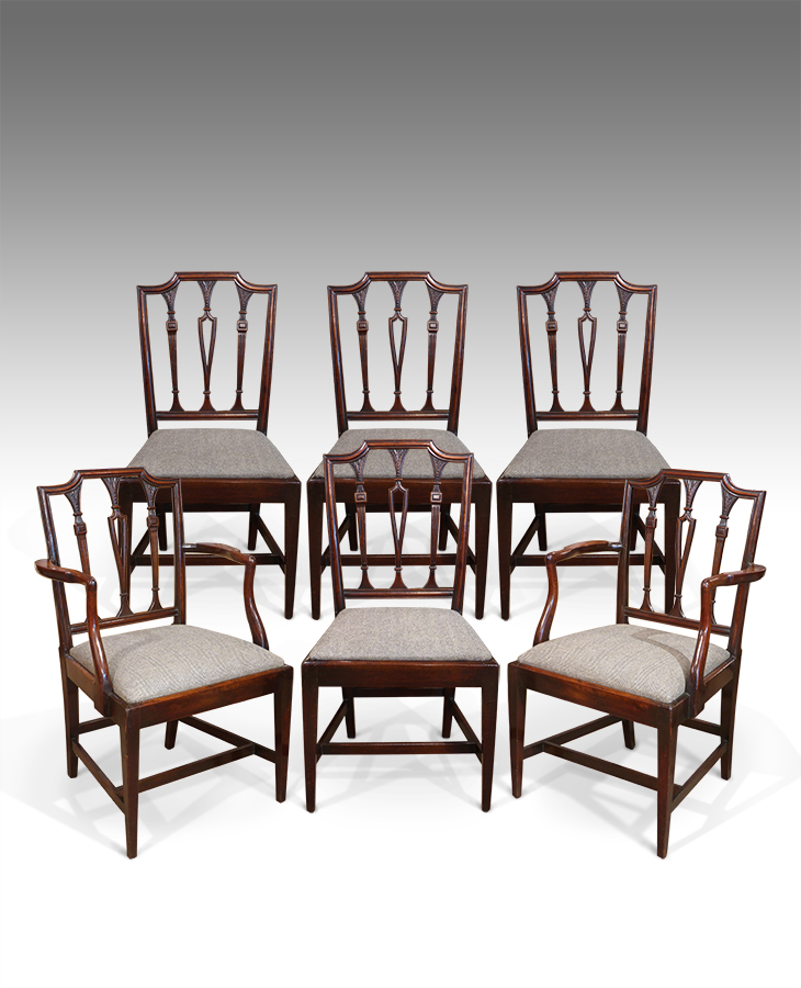 Set of 6 Sheraton Design Mahogany Dining Chairs