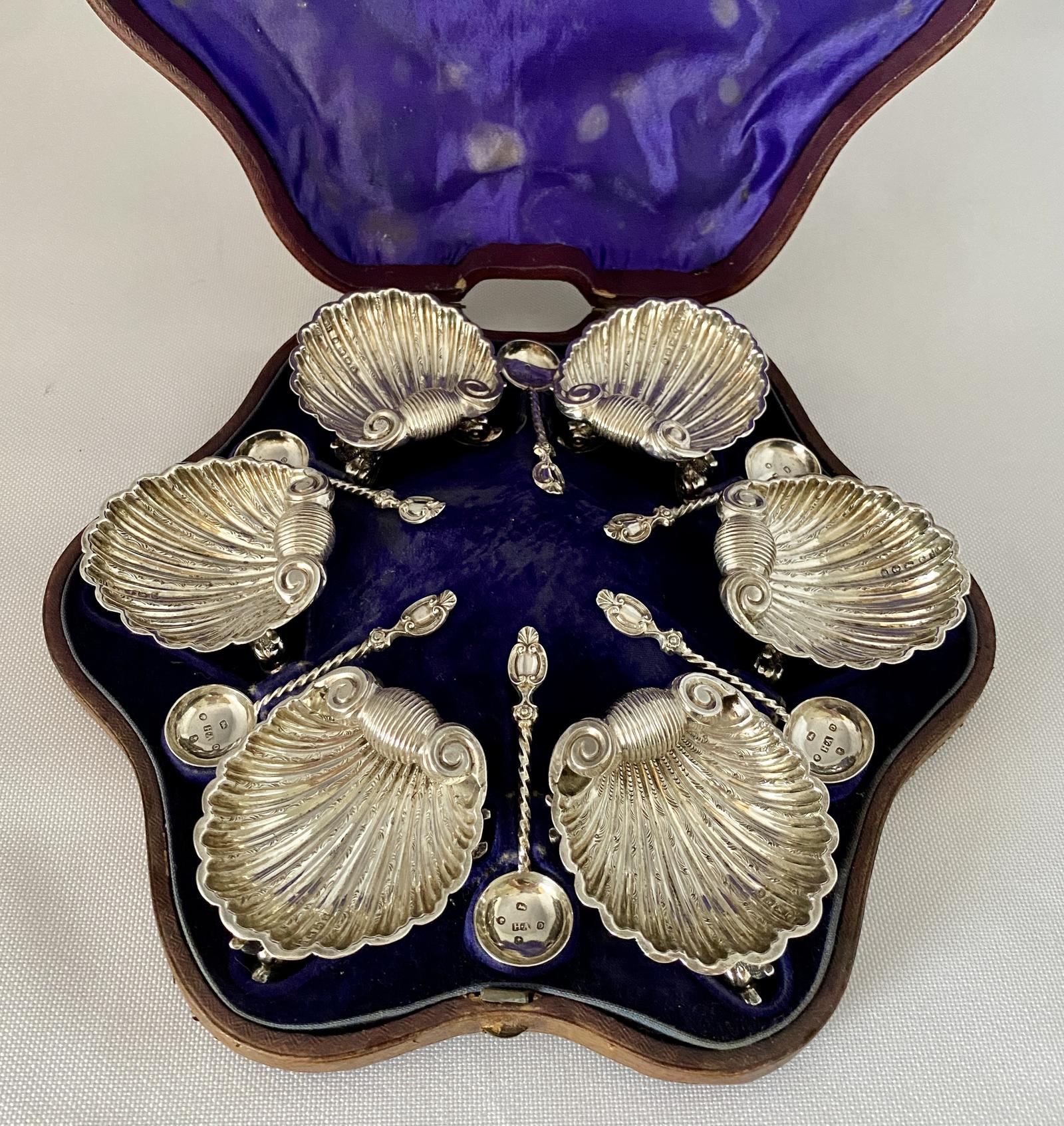Set of 6 Silver Salts & Matching Spoons. Birm 1864