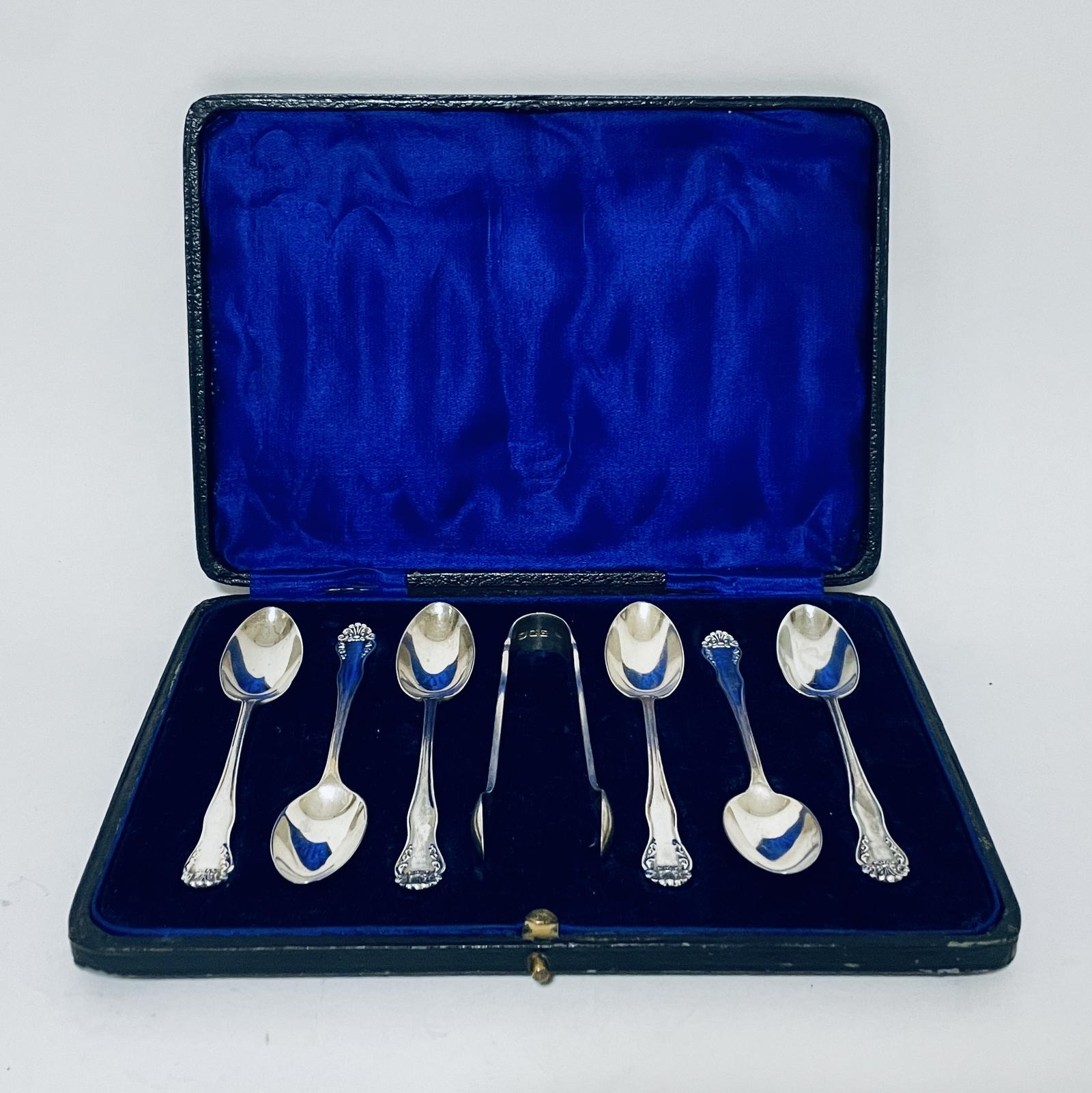 Set of 6 Silver Teaspoons and Tongs