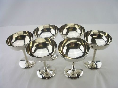 Set of 6 Sterling Silver Sundae Dishes 1913 Walker & Hall