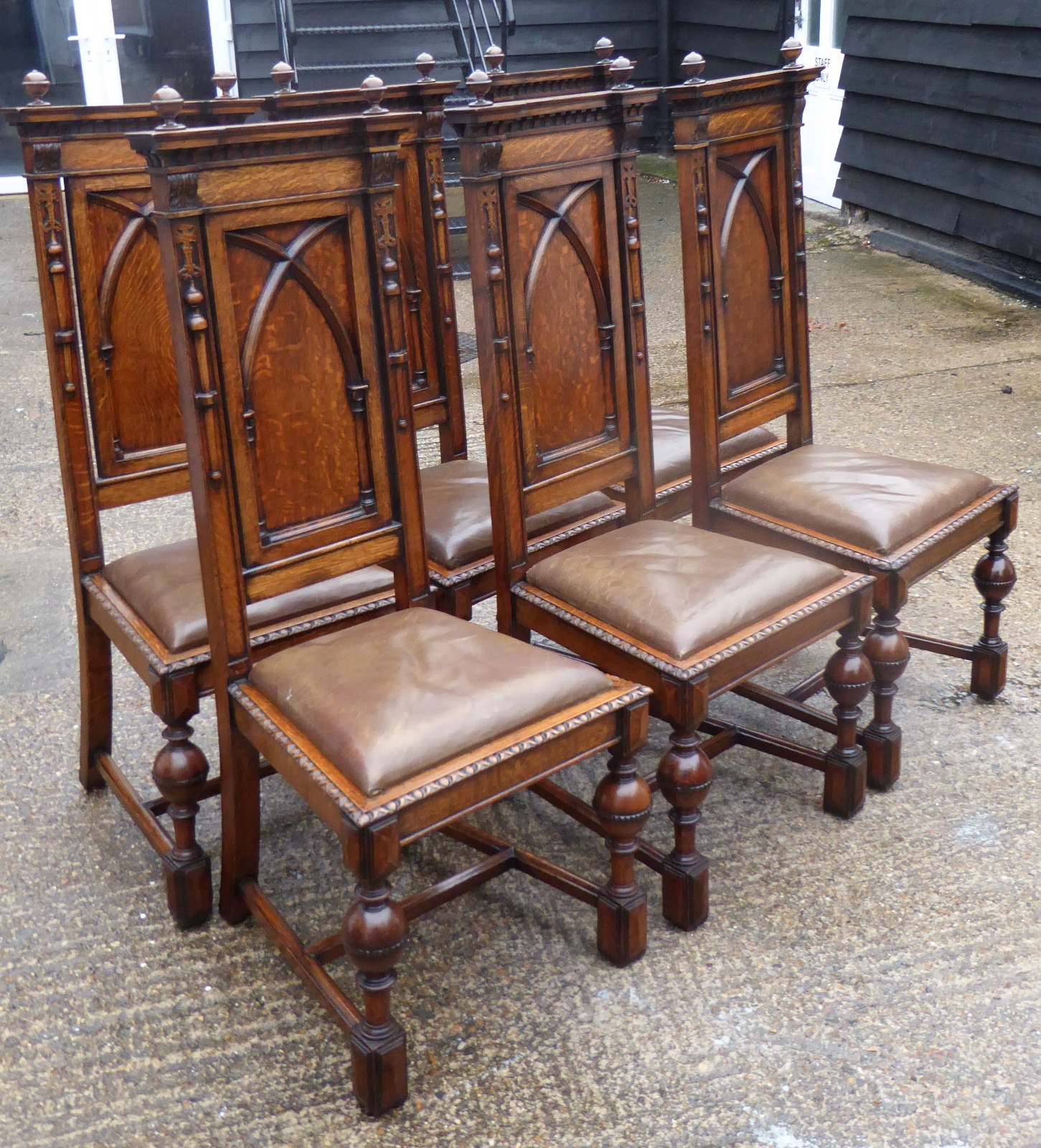 Set of 6 Superb Oak Carved Baroque Revival Chairs