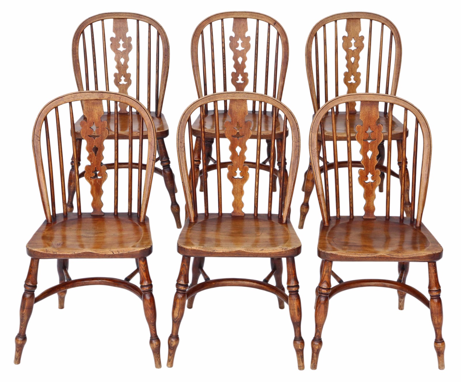 Set of 6 Victorian Ash & Elm Windsor Kitchen Dining Chairs C.1840