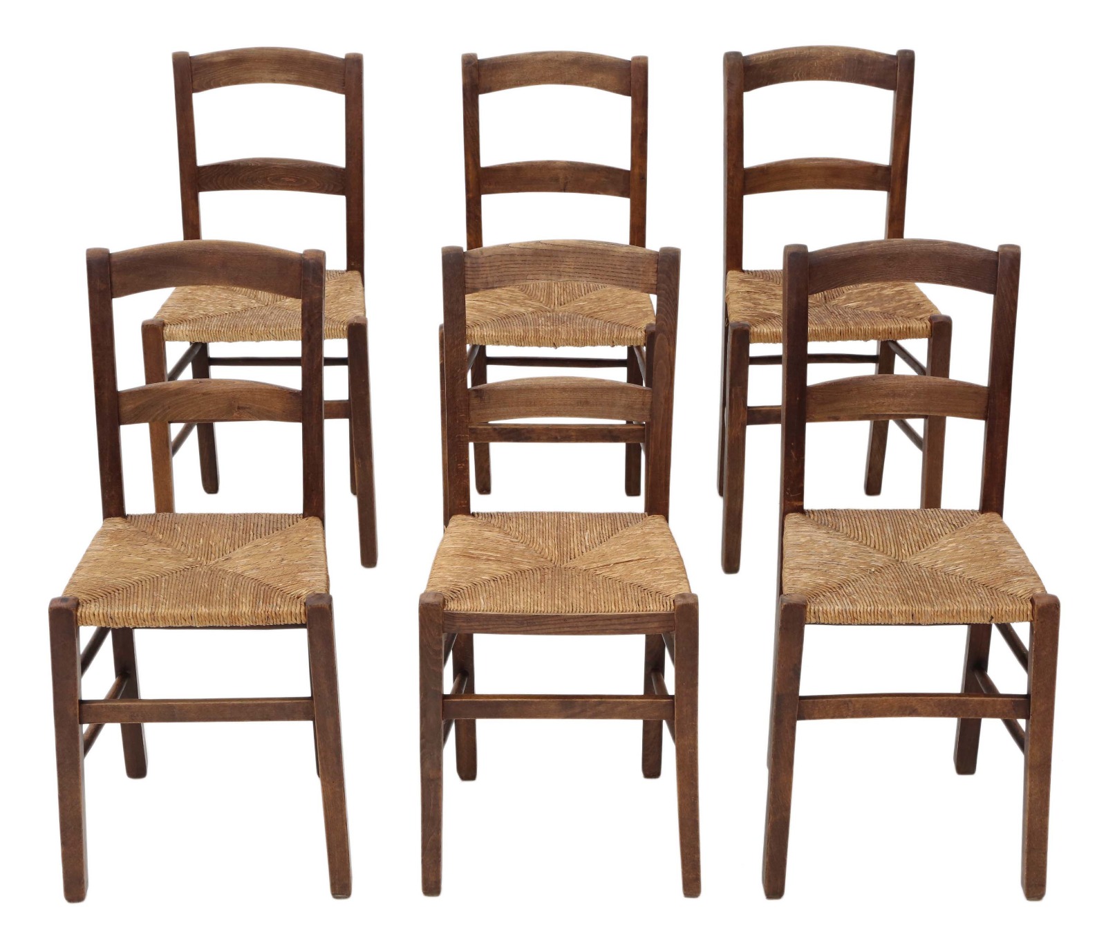 Set of 6 Victorian Beech Kitchen Dining Chairs Rush Seats C.1900