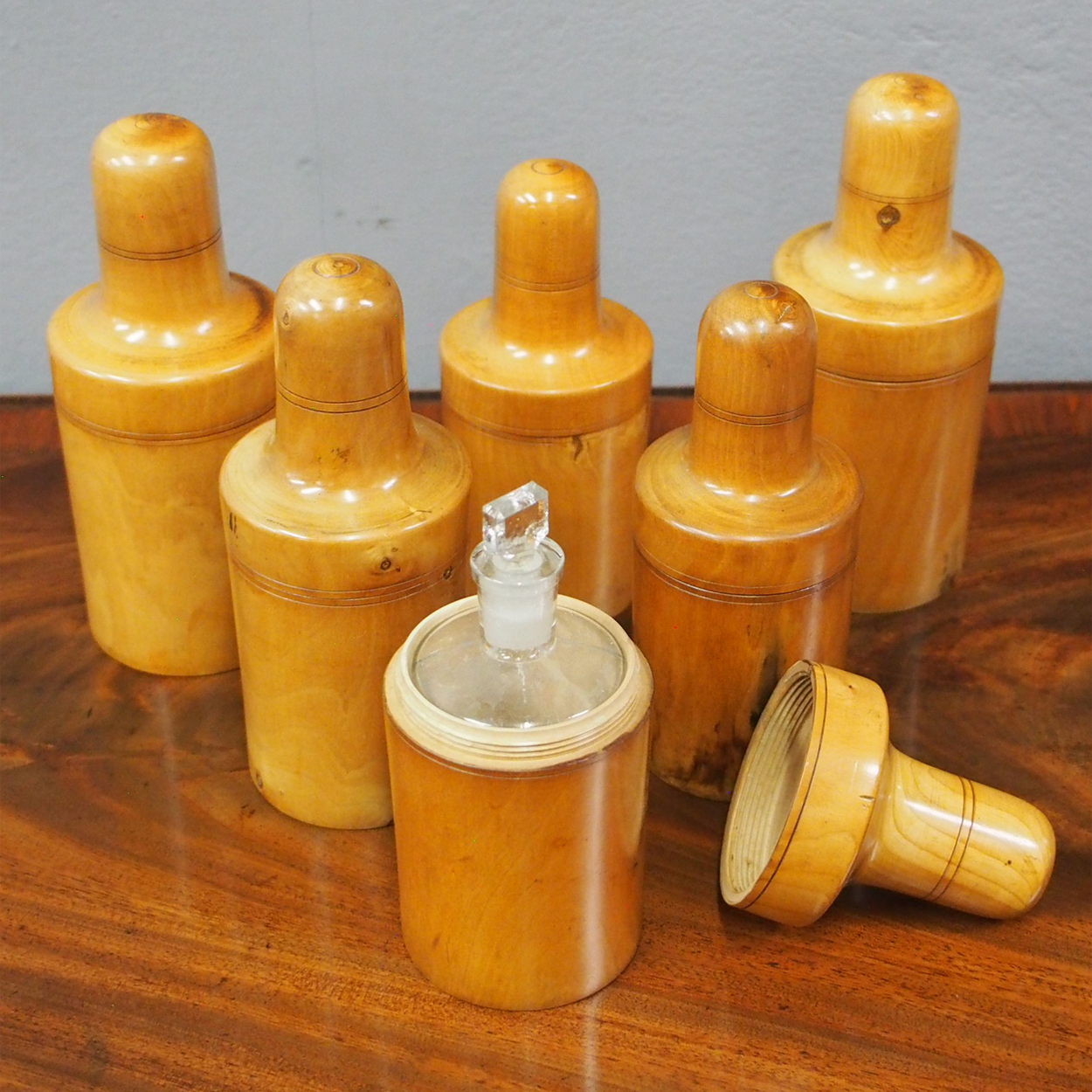Set of 6 Victorian Boxwood Apothecary Canisters