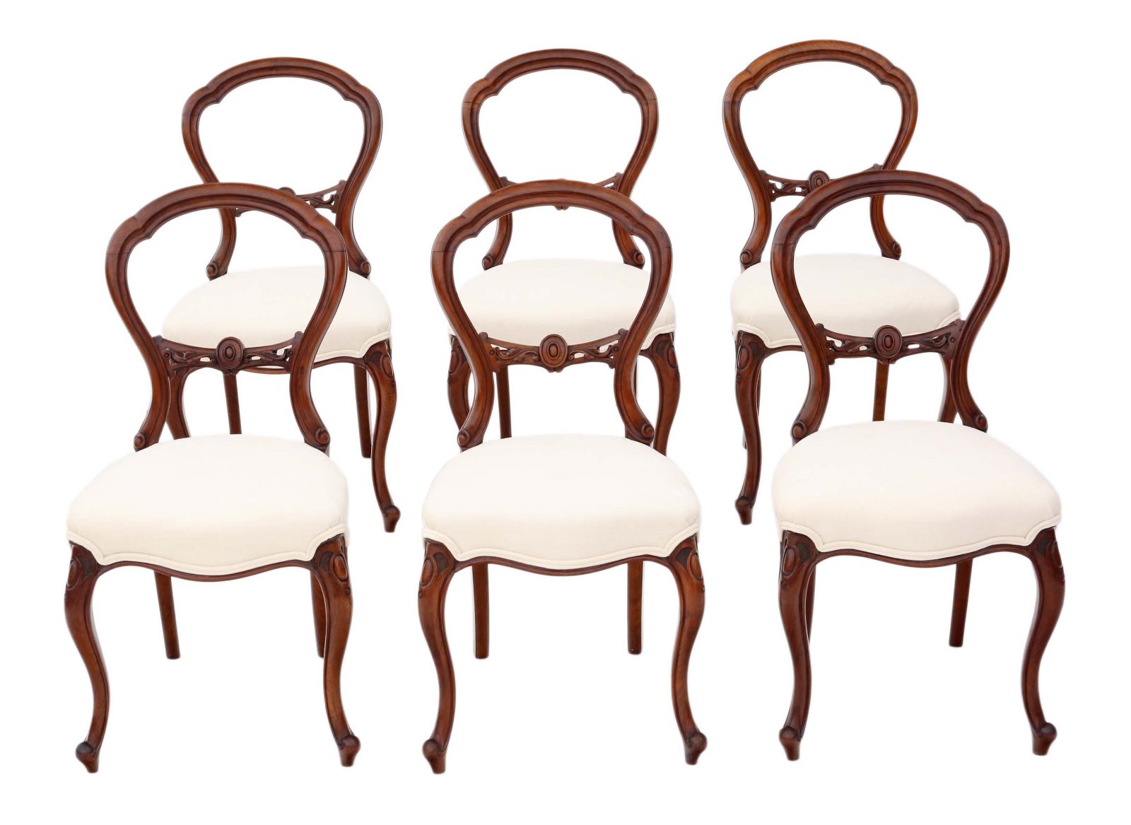 Set of 6 Victorian C1870 Walnut Balloon Back Dining Chairs