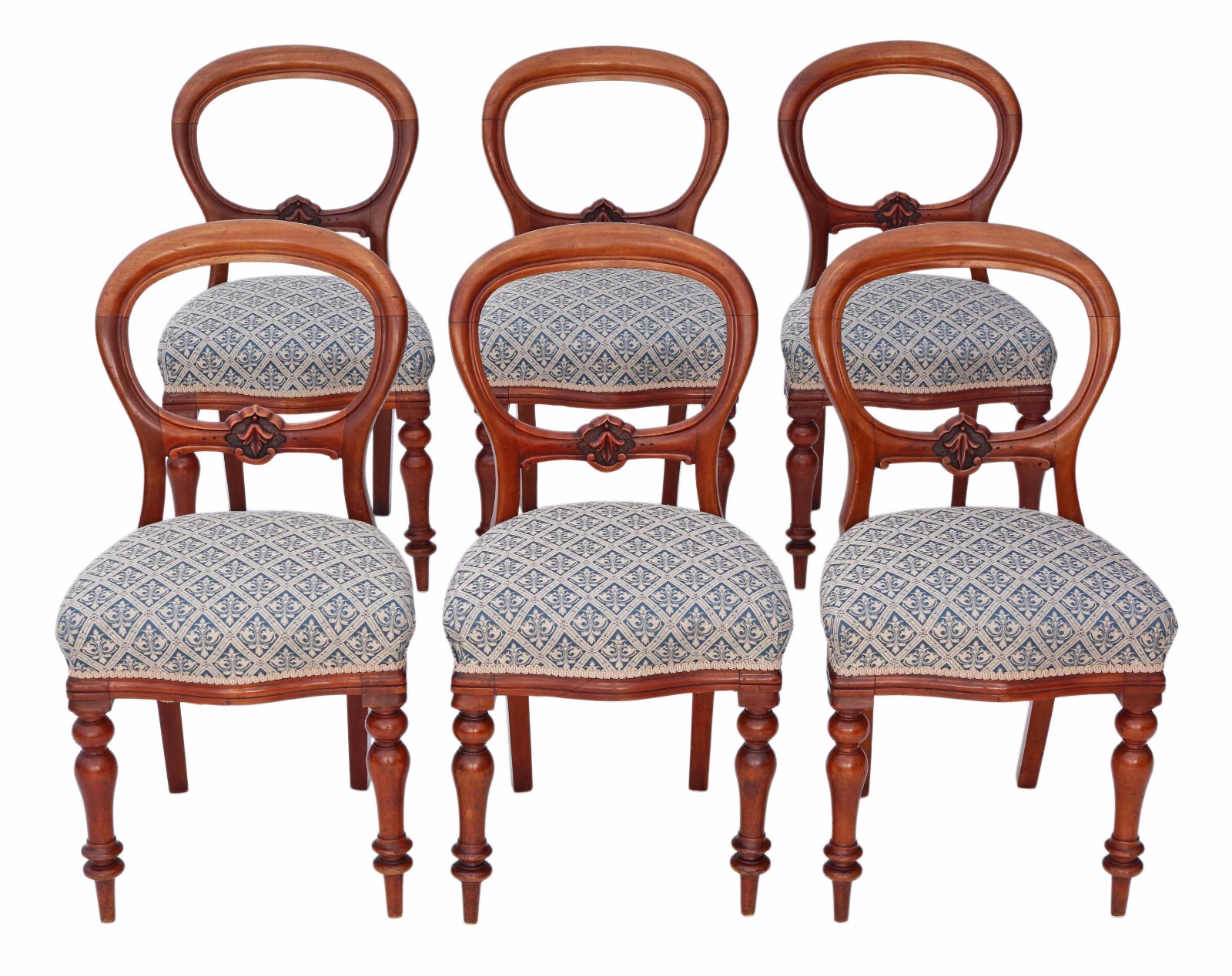 Set of 6 Victorian Mahogany Balloon Back Dining Chairs C.1870
