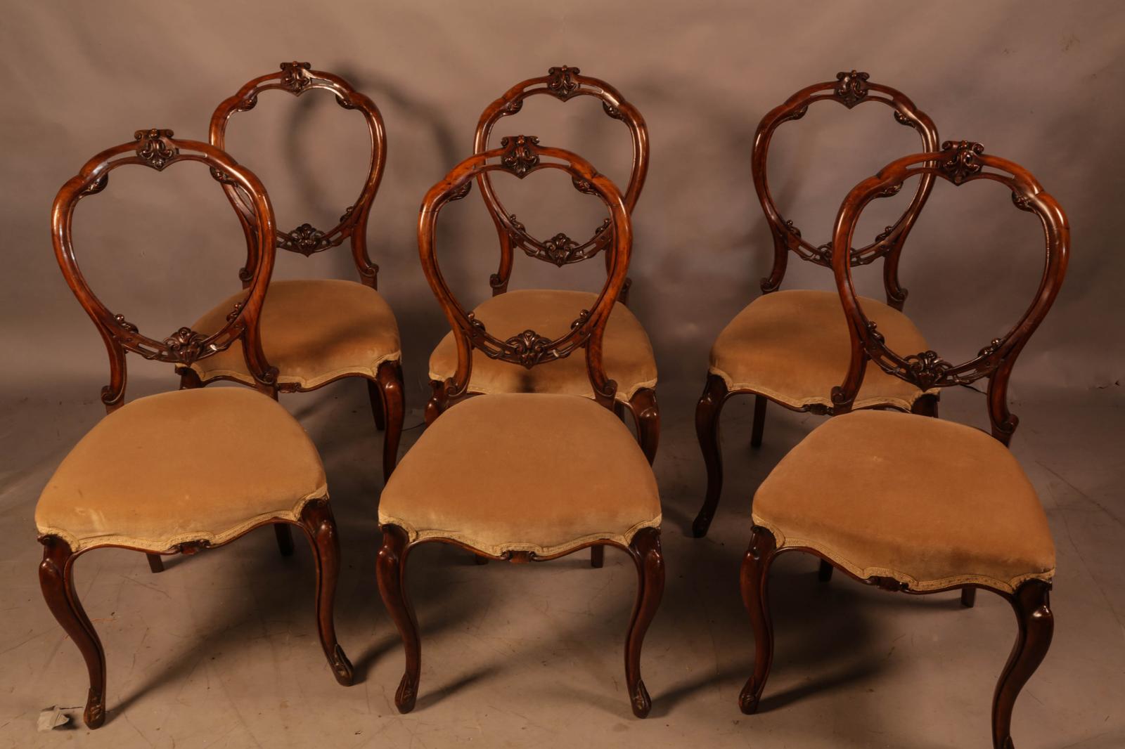 Set of 6 Victorian Solid Walnut Dining Chairs