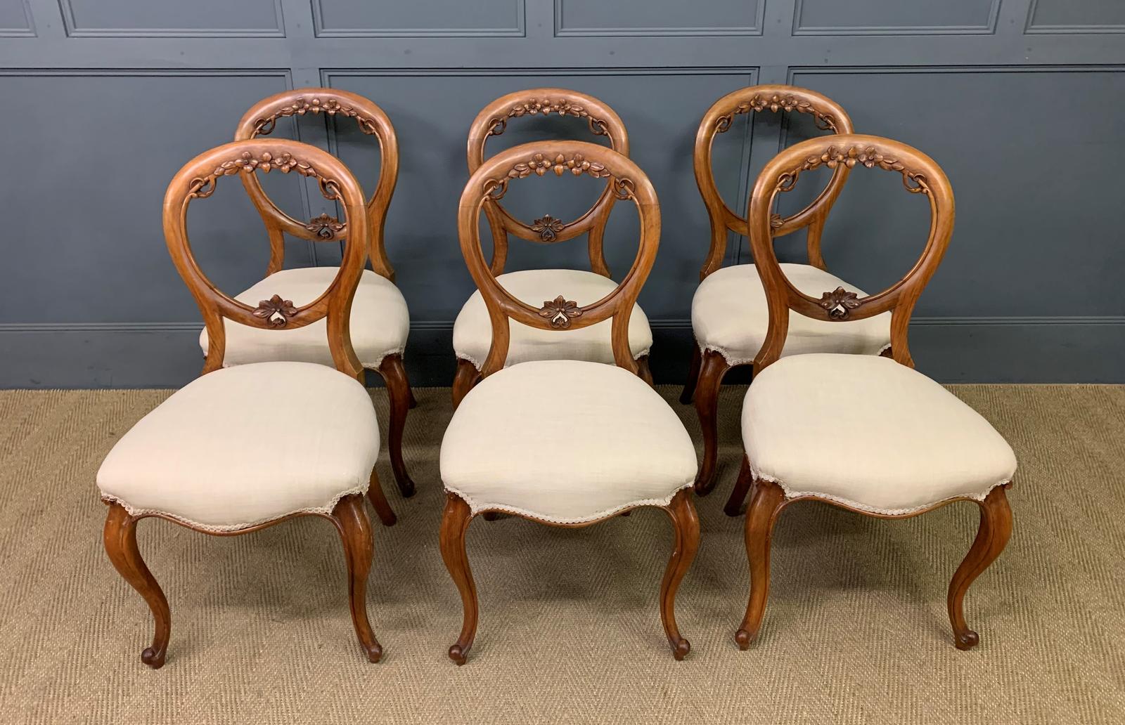 Set of 6 Victorian Walnut Dining Chairs c.1875