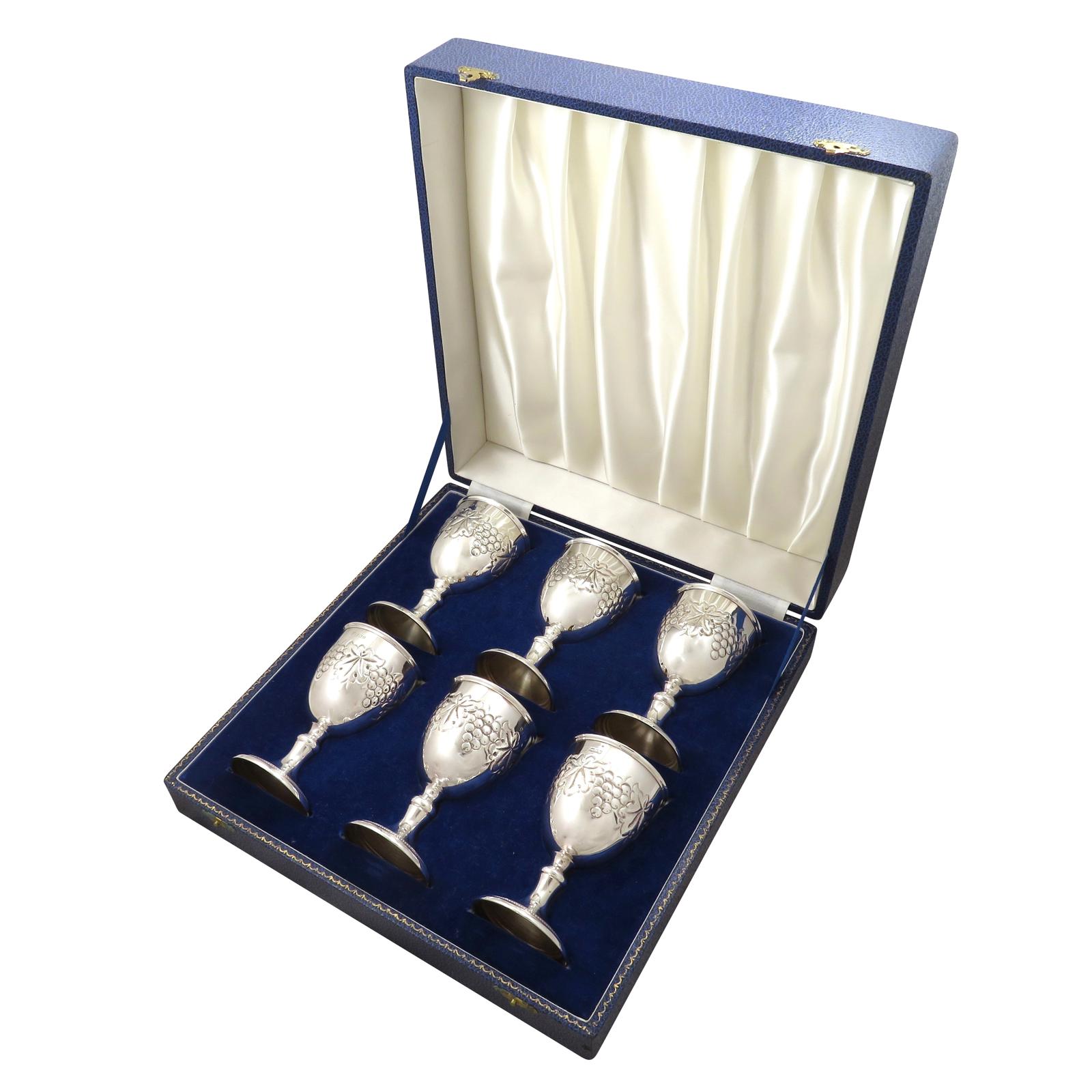 Set of 6 Vintage Sterling Silver Wine Goblets in Case