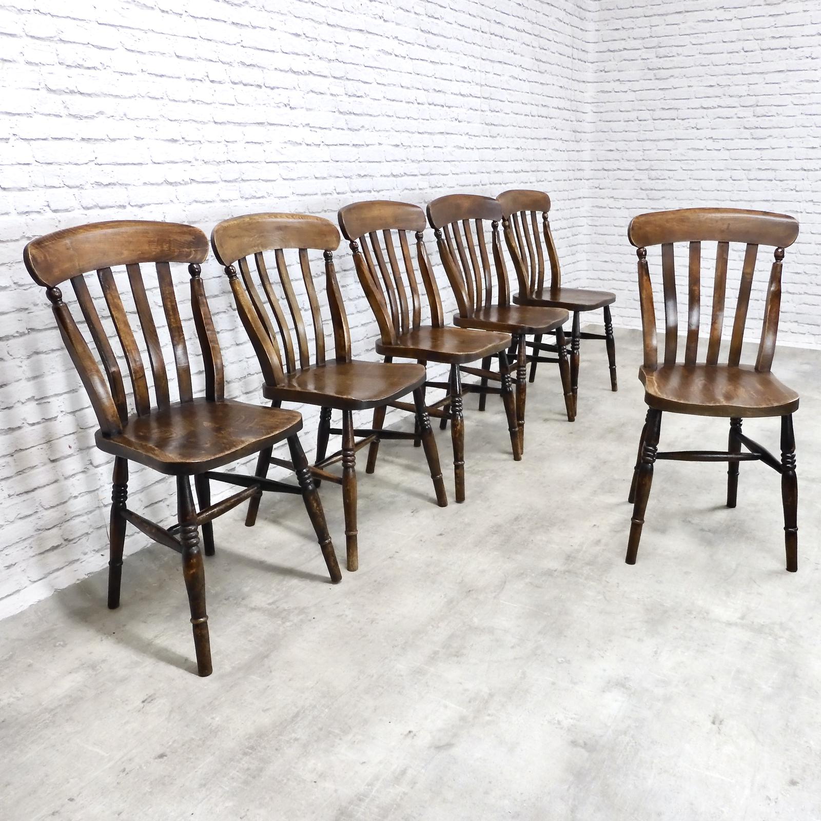 Set of 6 Windsor Lathback Kitchen Chairs, Victorian