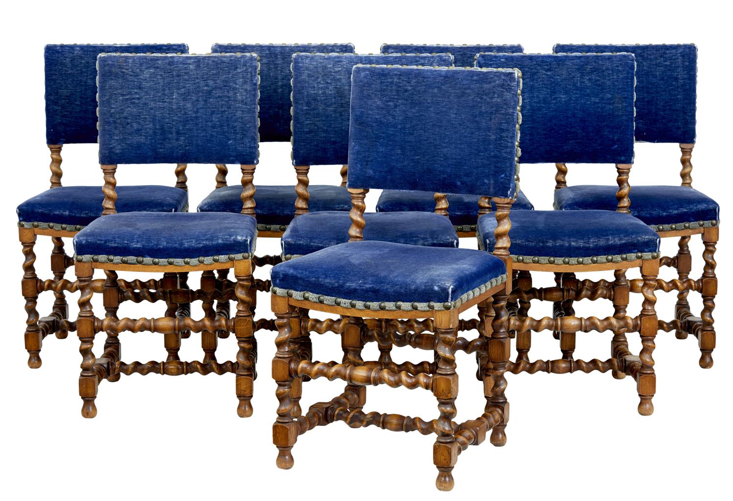 Set of 8 19th Century Oak Barley Twist Dining Chairs
