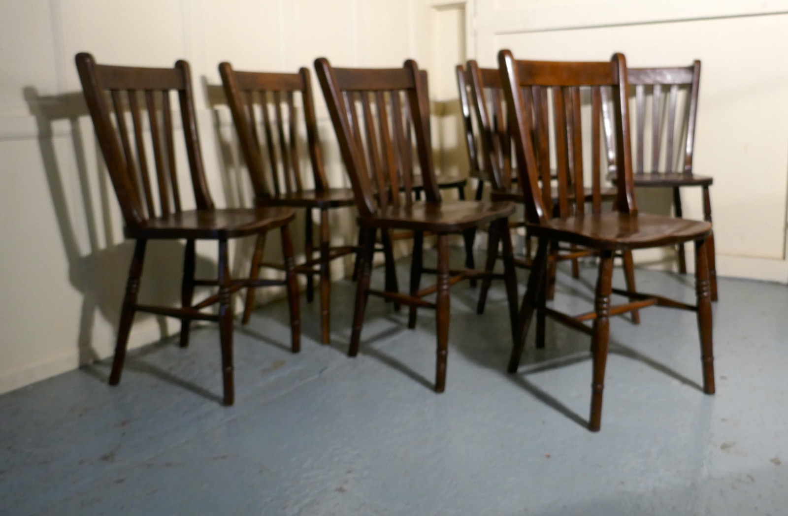 Set of 8 19th Century Traditional Slat Back Farmhouse Kitchen Chairs