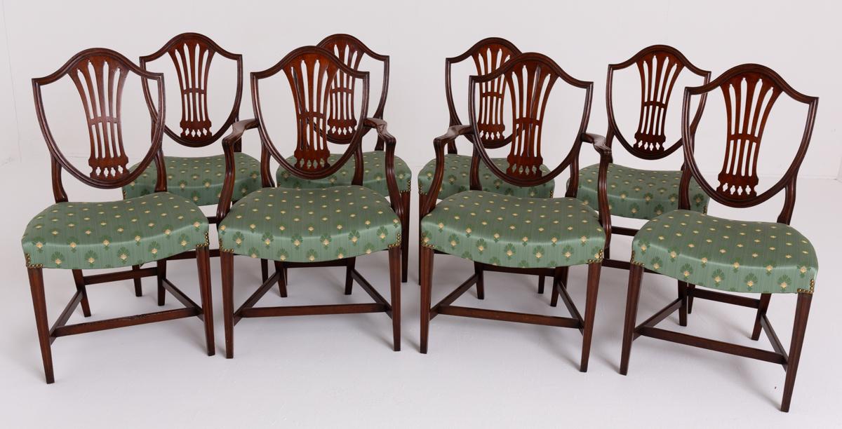 Set of 8 (6 + 2) Mahogany Hepplewhite Style Dining Chairs