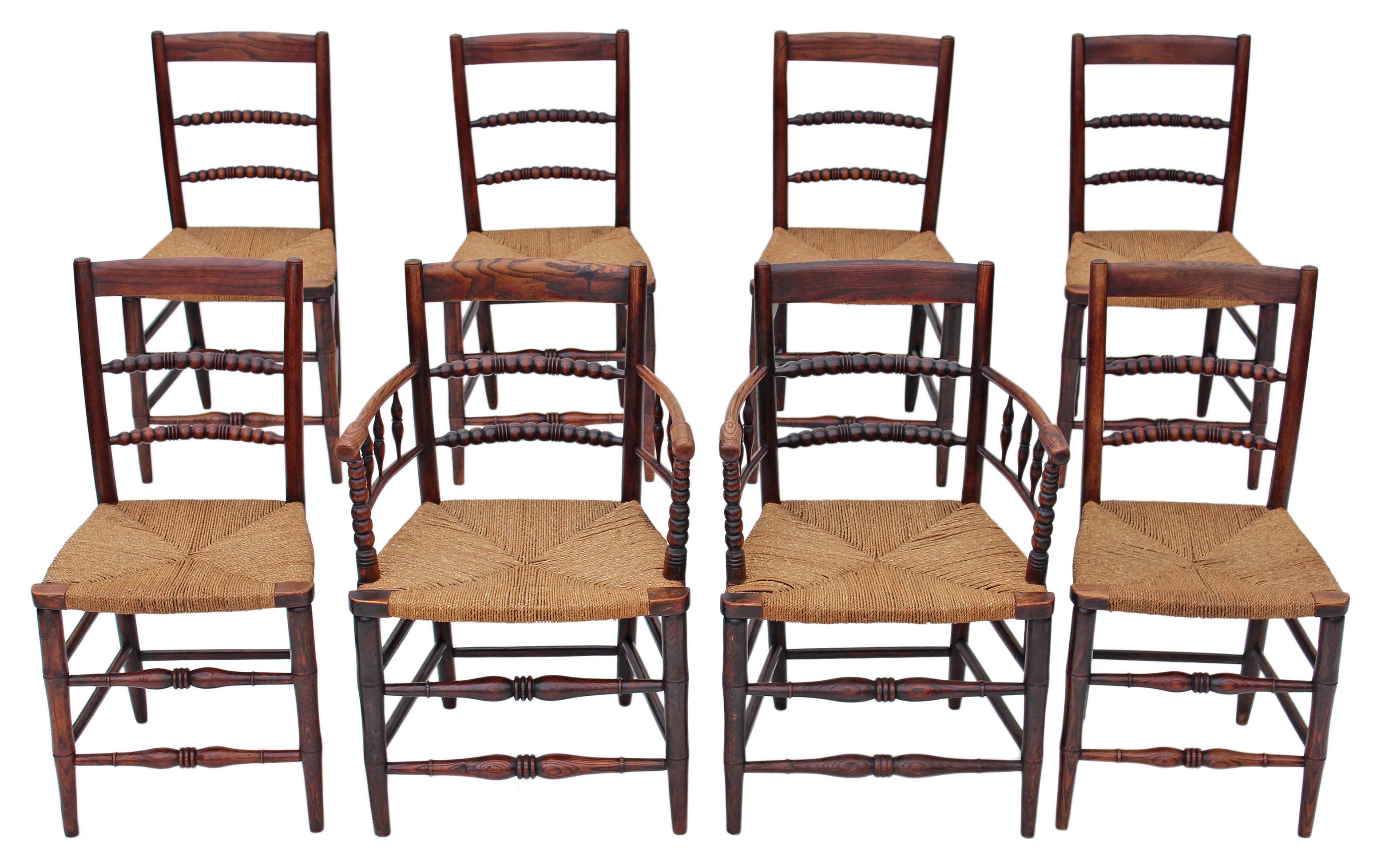 Set of 8 (6+2) 19th Century elm dining chairs kitchen