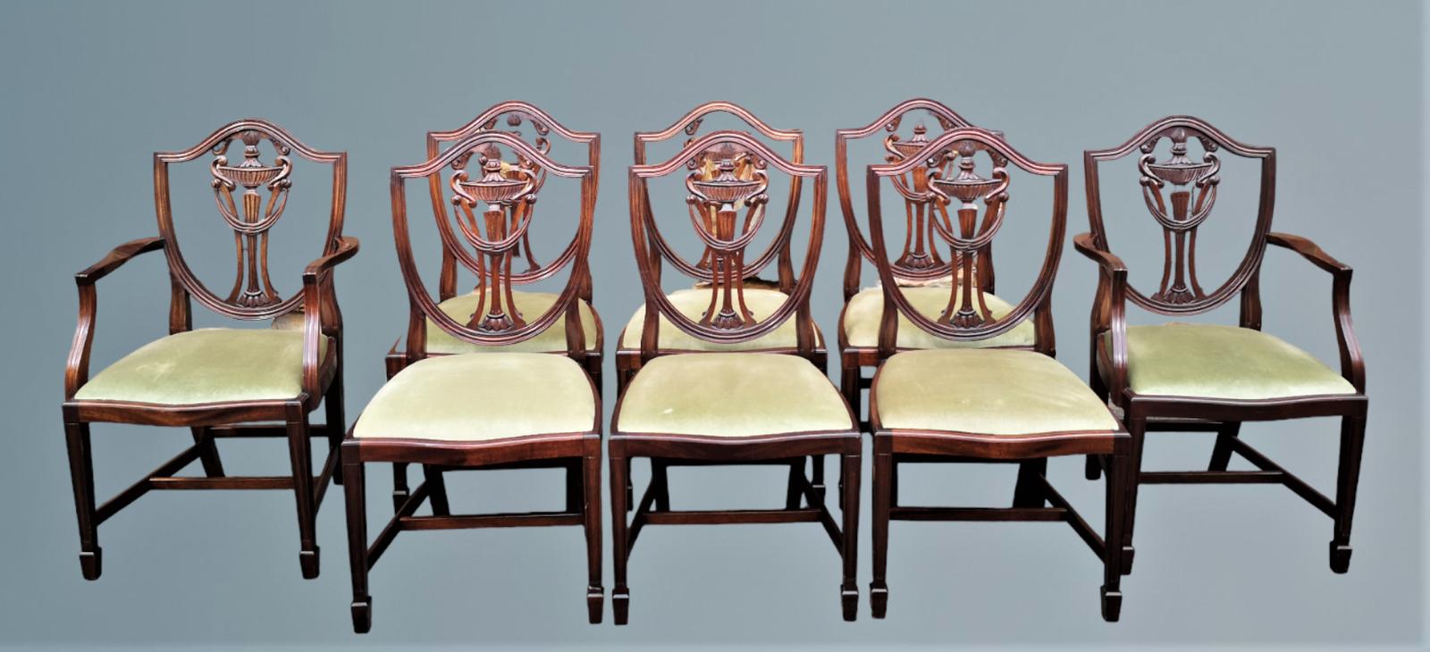 Set of 8 (6+2) Mahogany Hepplewhite Style Dining Chairs by GT Rackstraw