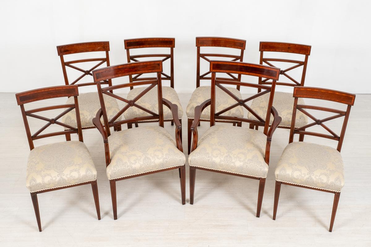 Set of 8 '6+2' Sheraton Revival Mahogany Dining Chairs