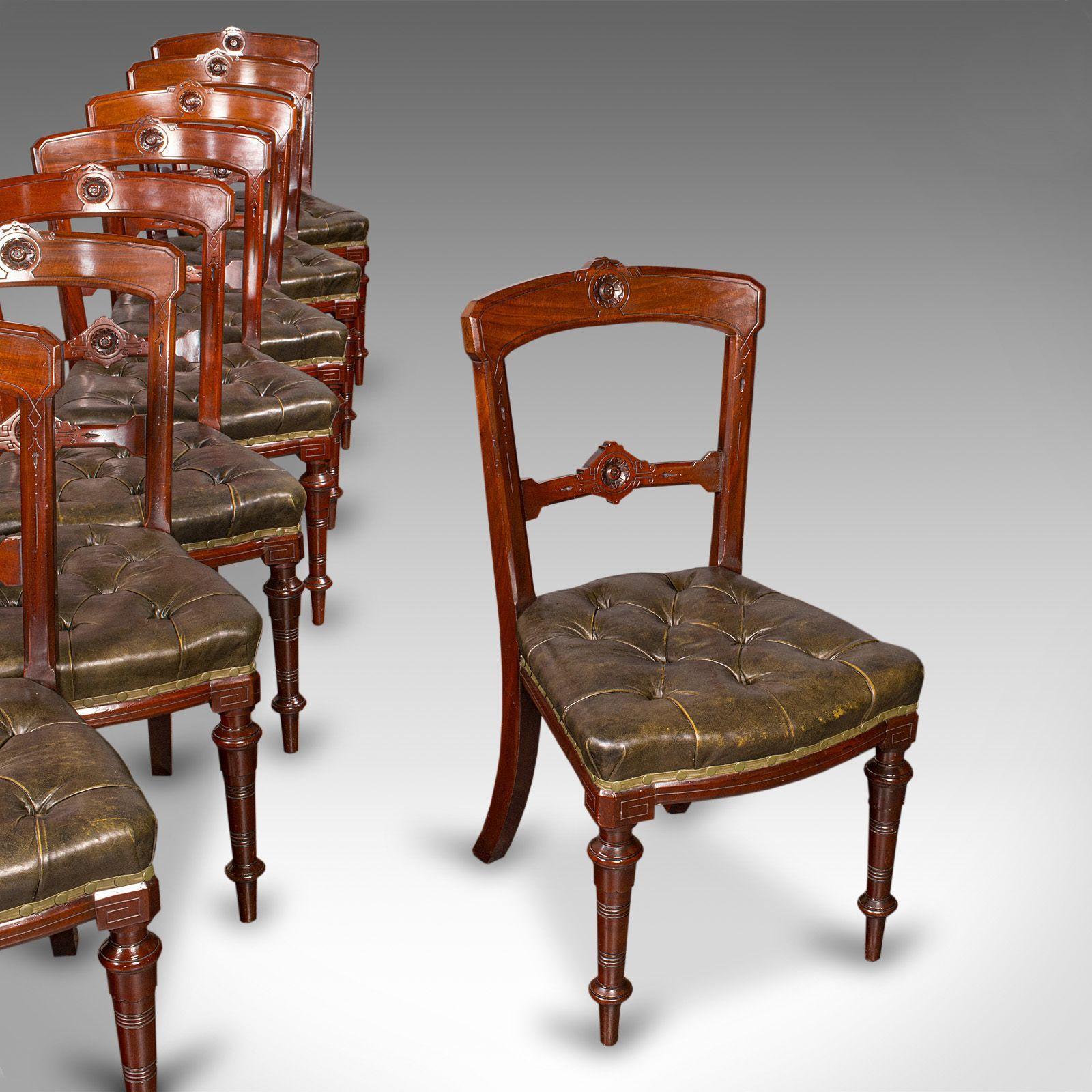 Set of 8 Antique Dining Chairs, English, Walnut, Leather - Victorian c.1870 (1 of 12)