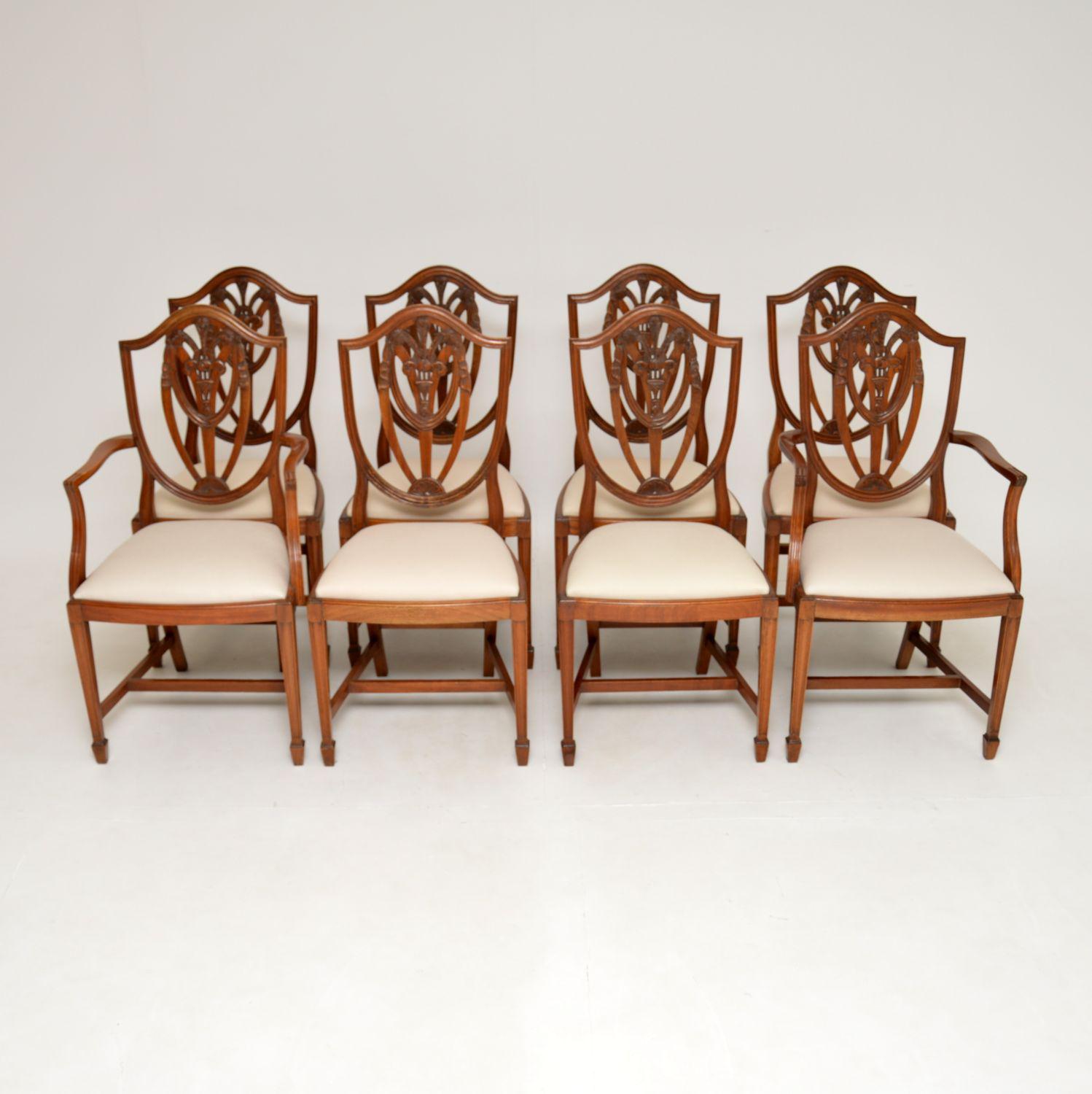 Set of 8 Antique Georgian Style Shield Back Mahogany Dining Chairs