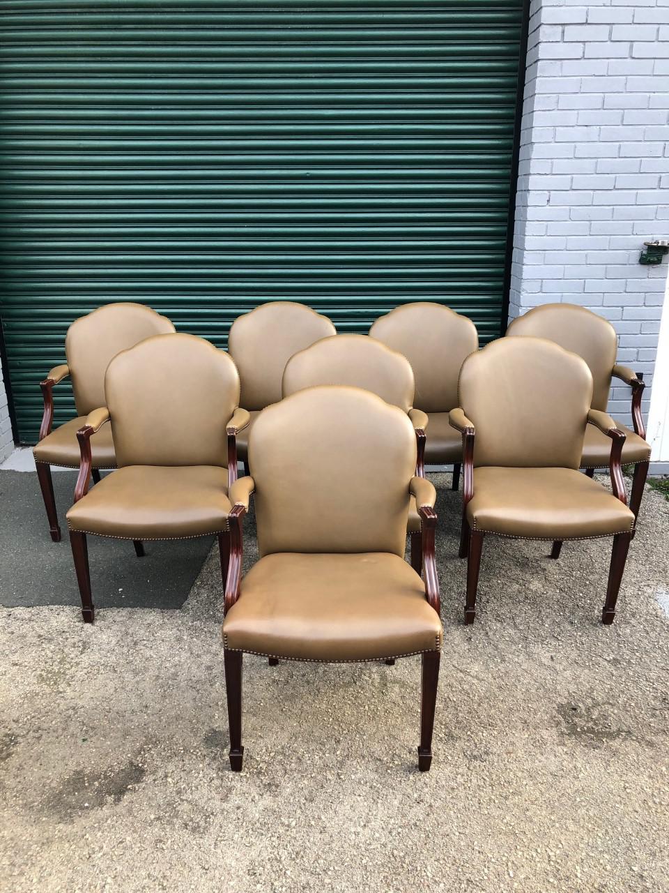 Set of 8 Antique Mahogany & Leather Dining Chairs