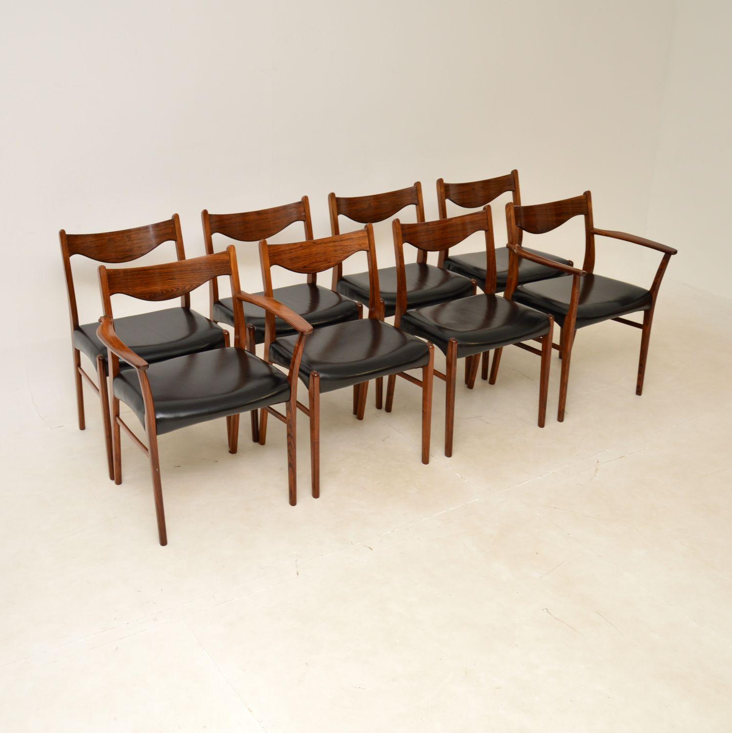 Set of 8 Danish Vintage Rosewood & Leather Dining Chairs by Arne Wahl Iversen