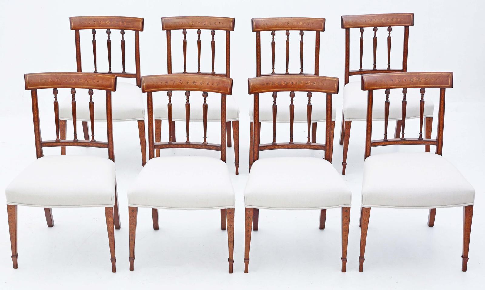 Set of 8 Early 19th Century Antique Mahogany Marquetry Dining Chairs