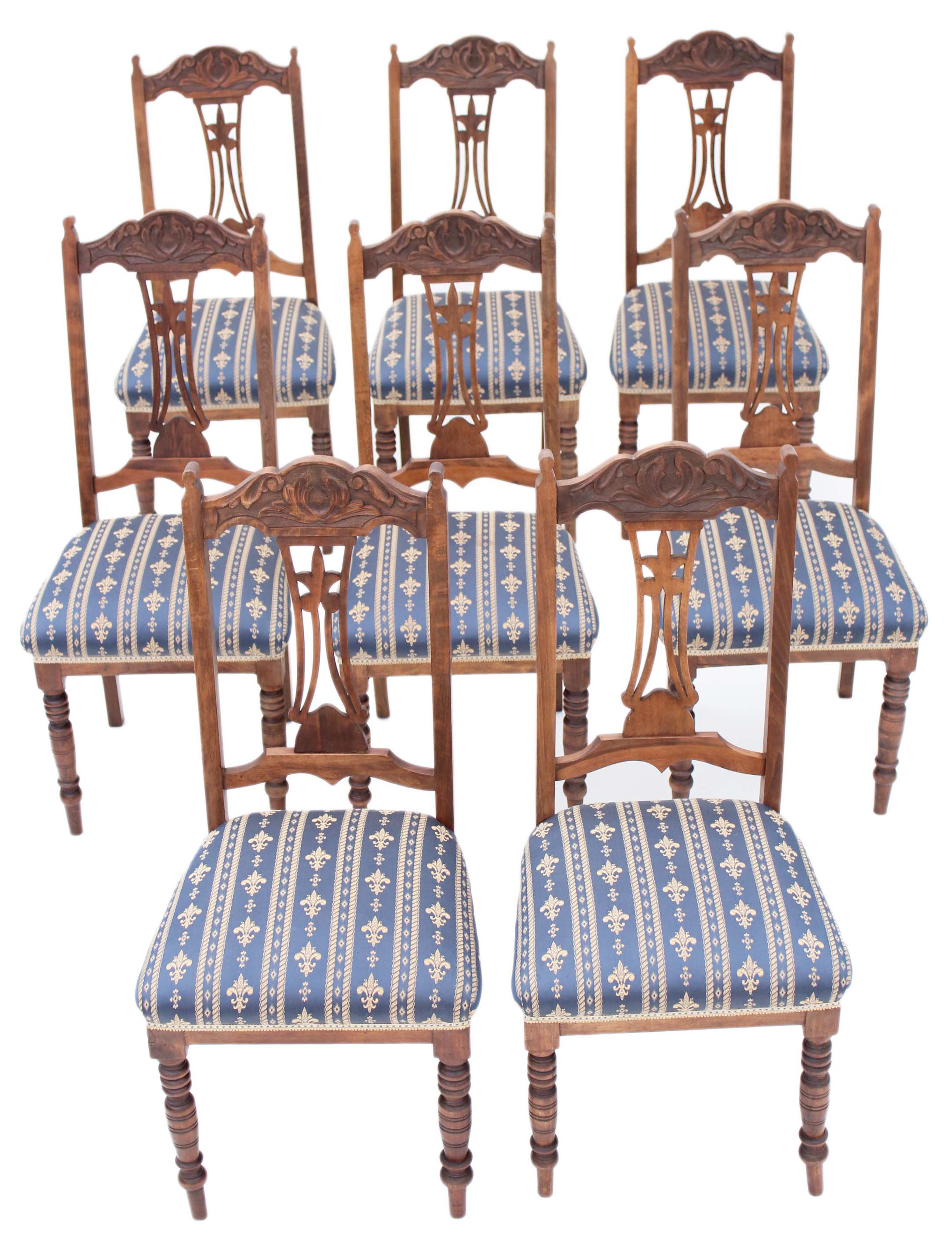 Set of 8 Edwardian Satinwood Beech Dining Chairs Art Nouveau