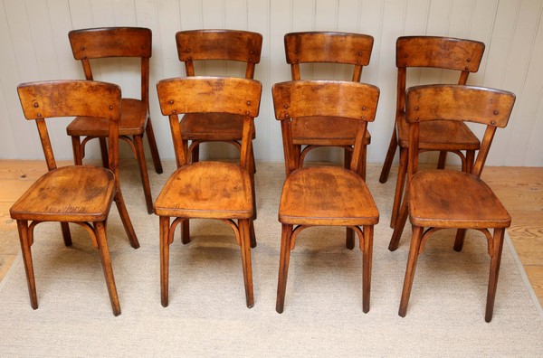 Set of 8 French Beechwood & Ply Dining Chairs c.1930 (1 of 1)