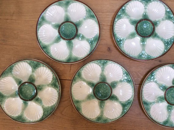 Set of 8 French Vintage Majolica Oyster Plates by Chantilly France