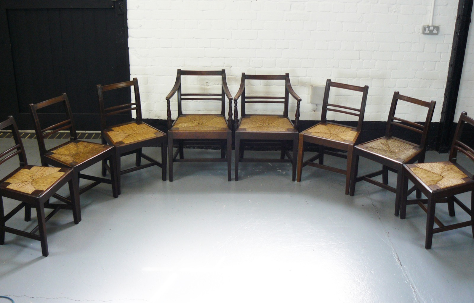 Set of 8 Georgian Country Dining Chairs Include 2 Carvers c.1830