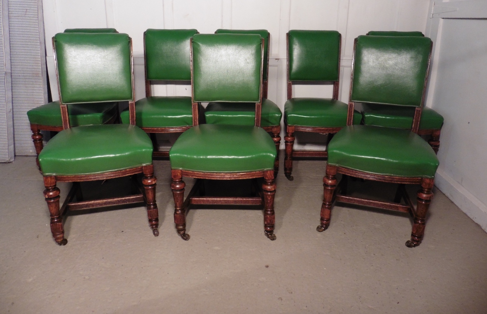 Set of 8 Heavy Arts & Crafts Gothic Oak & Leather Dining or Boardroom Chairs