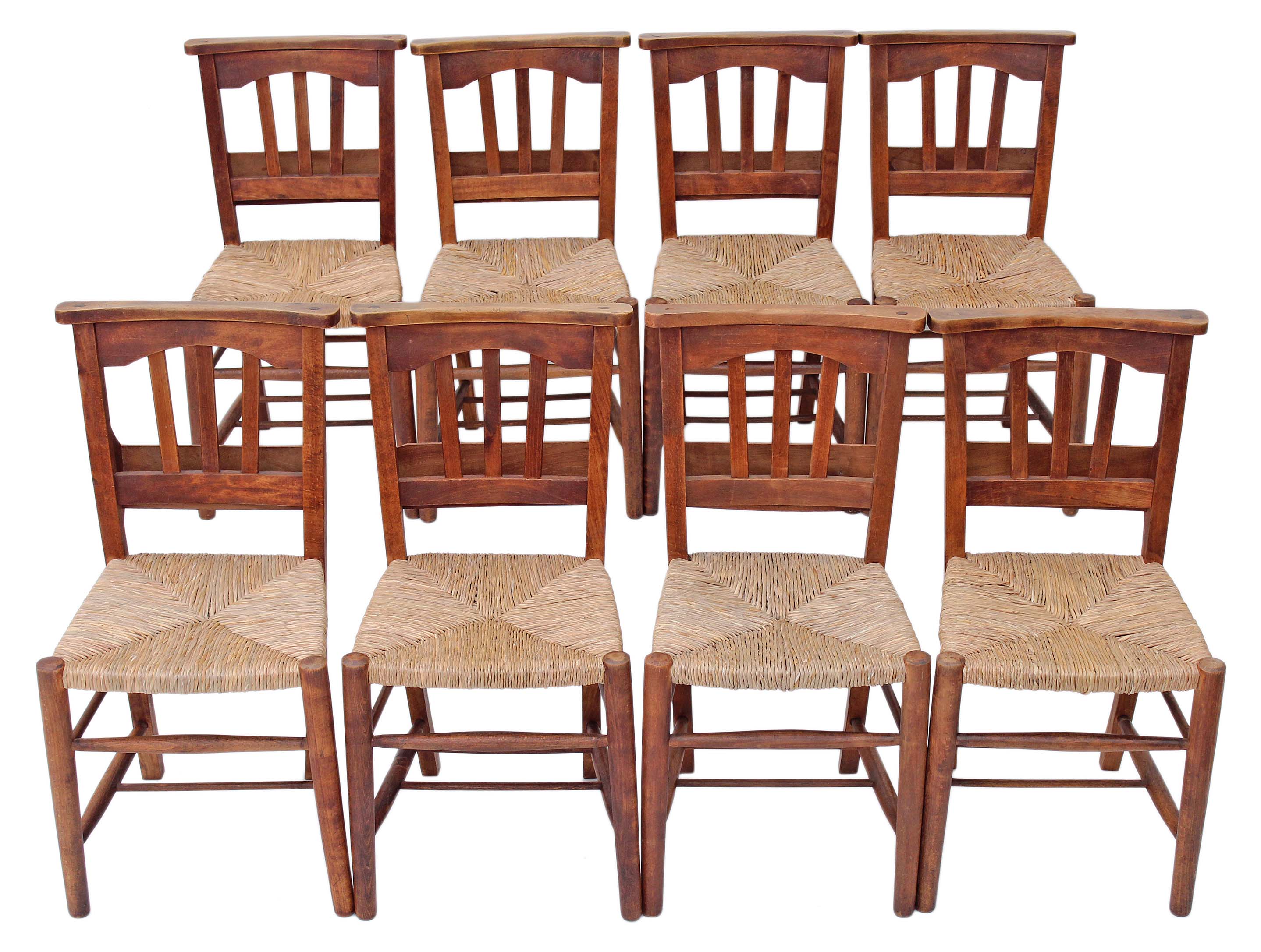 Set of 8 Late Victorian 19th Century Beech Rush Chapel Kitchen Dining Chairs