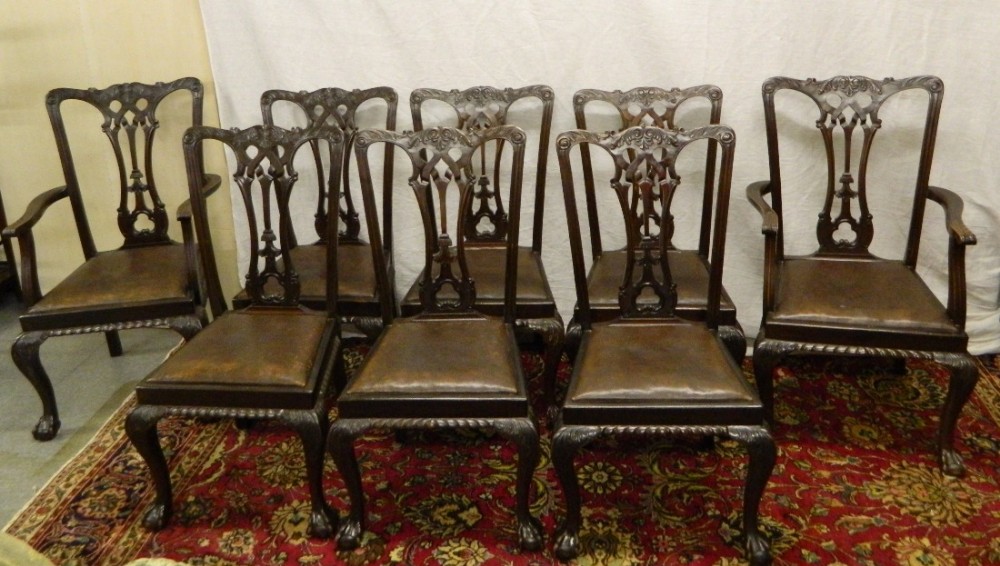 Set of 8 Mahogany Chippendale Style Dining Chairs c.1920