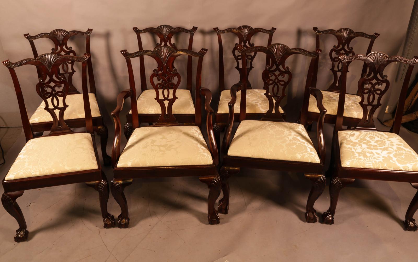 Set of 8 Mahogany Dining Chairs in the Chippendale Style c.1900 (1 of 12)