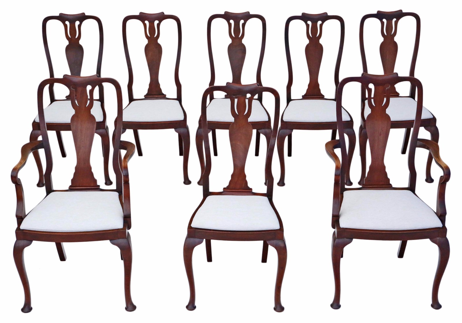 Set of 8 Mahogany Queen Anne Dining Chairs c.1910 (1 of 1)