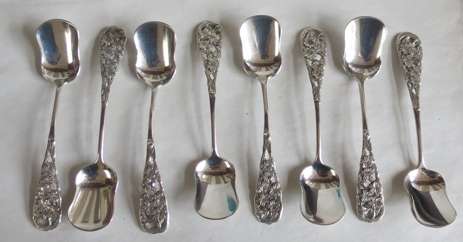 Set of 8 Meiji Period Japanese Silver Spoons - Signed Musashiya