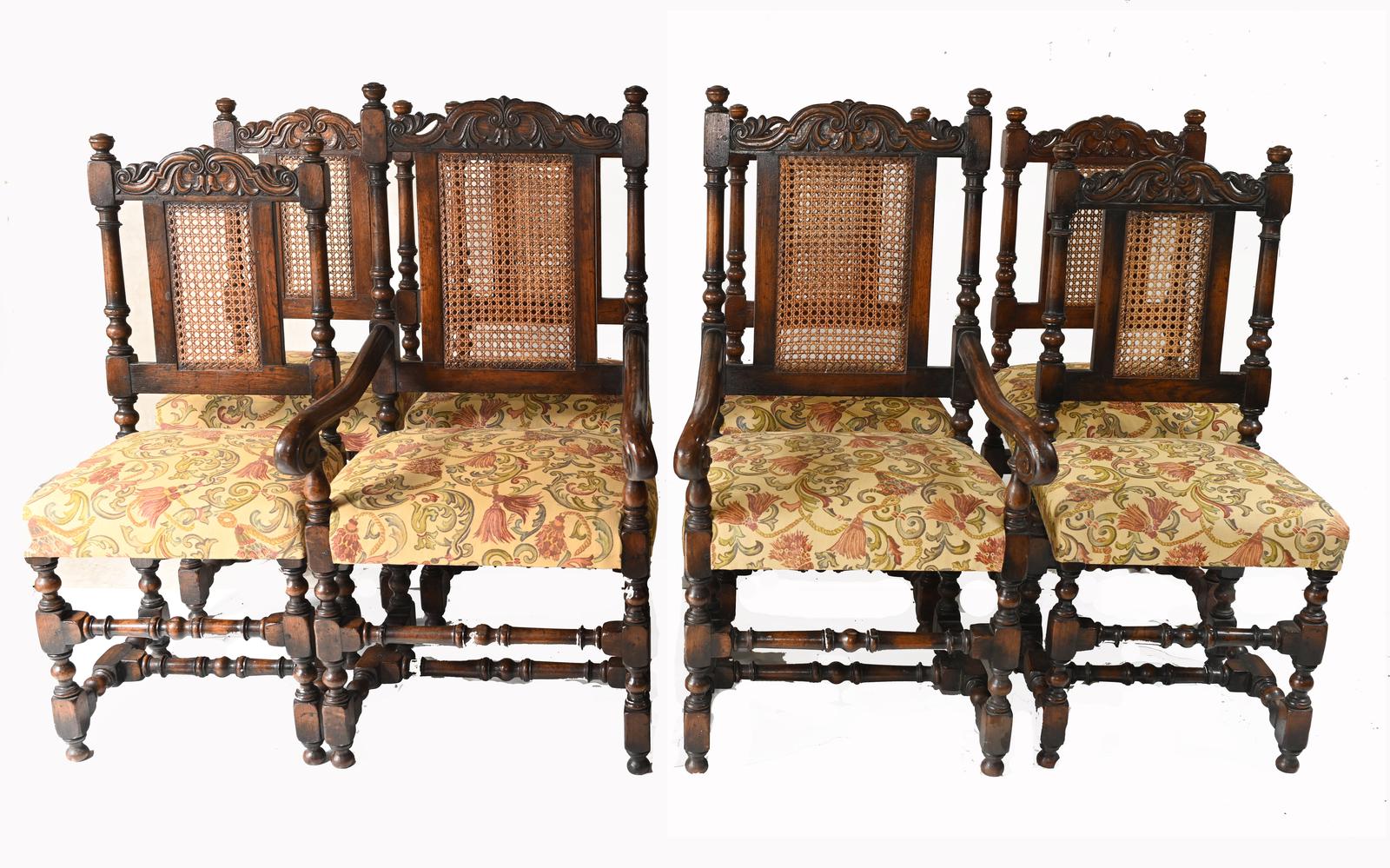 Set of 8 Oak Dining Chairs Barley Twist Farmhouse Diners