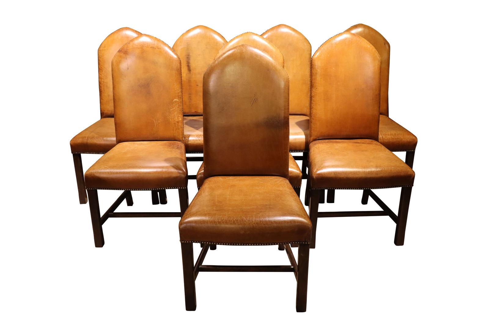 Set of 8 Oak & Leather Dining Chairs - 19th Century