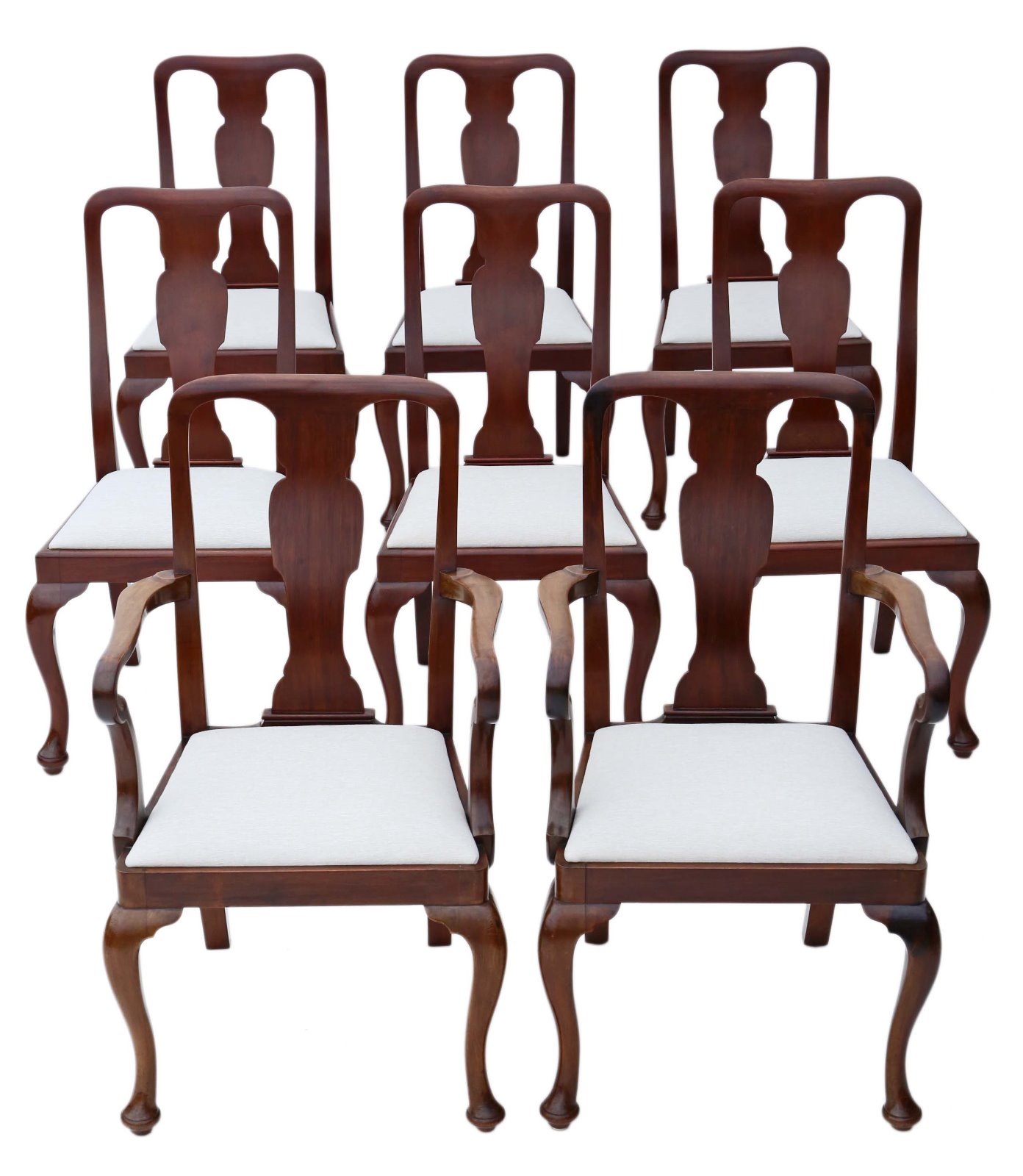 Set of 8 Queen Anne Revival Mahogany High Back Dining Chairs (1 of 1)
