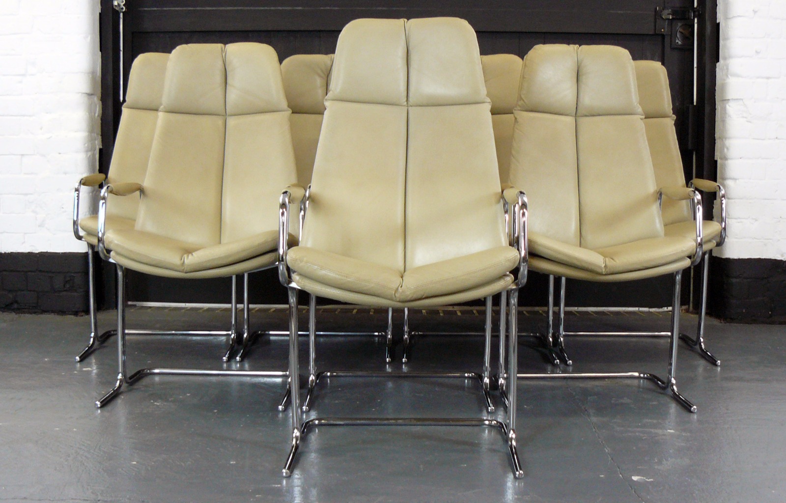 Set of 8 Vintage Pieff High Back Eleganza Leather Chairs in Superb Condition