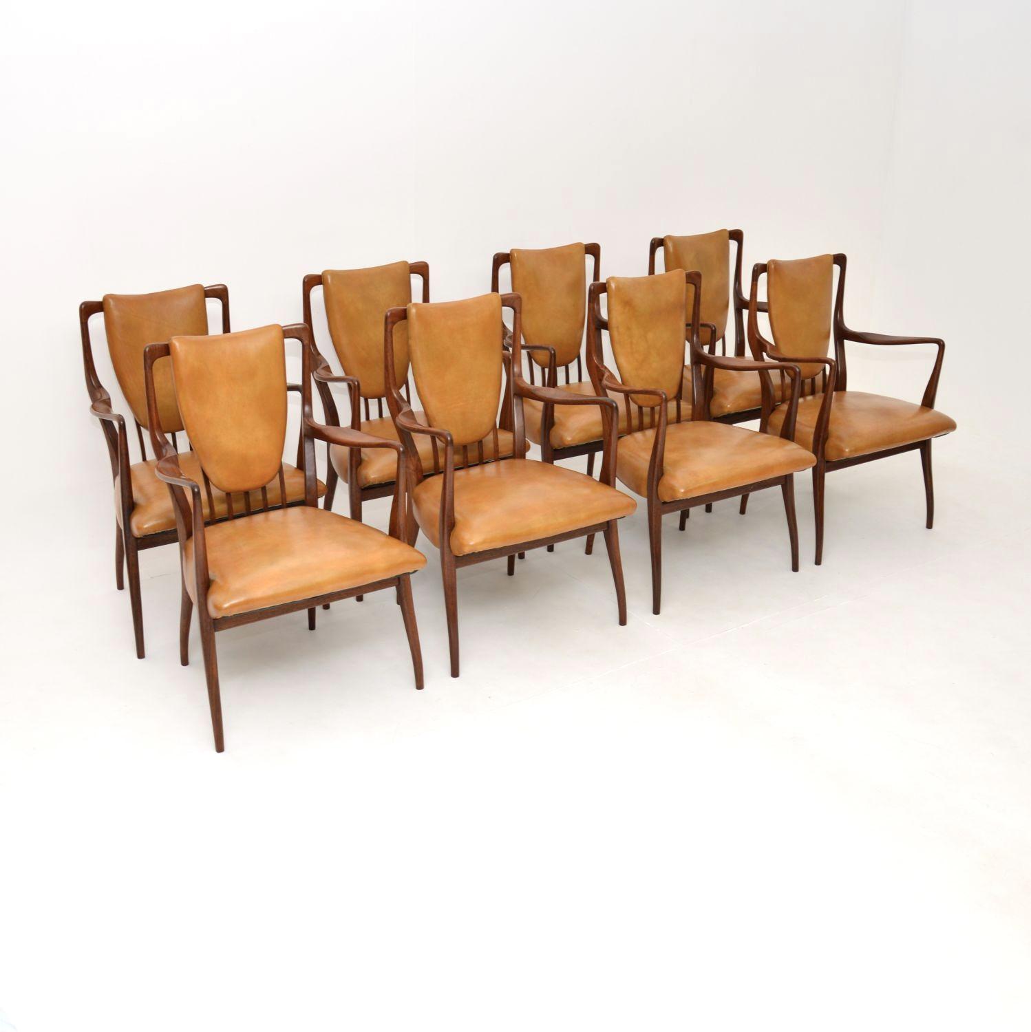 Set of 8 Vintage Rosewood & Leather Dining Chairs by A.J Milne