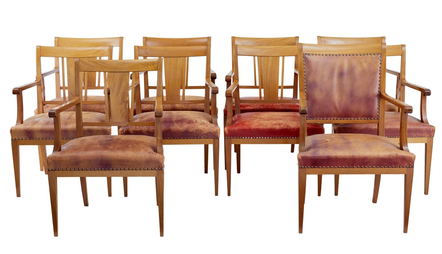Set of 9 + 1 20th Century Scandinavian Modern Mahogany Armchairs (1 of 1)