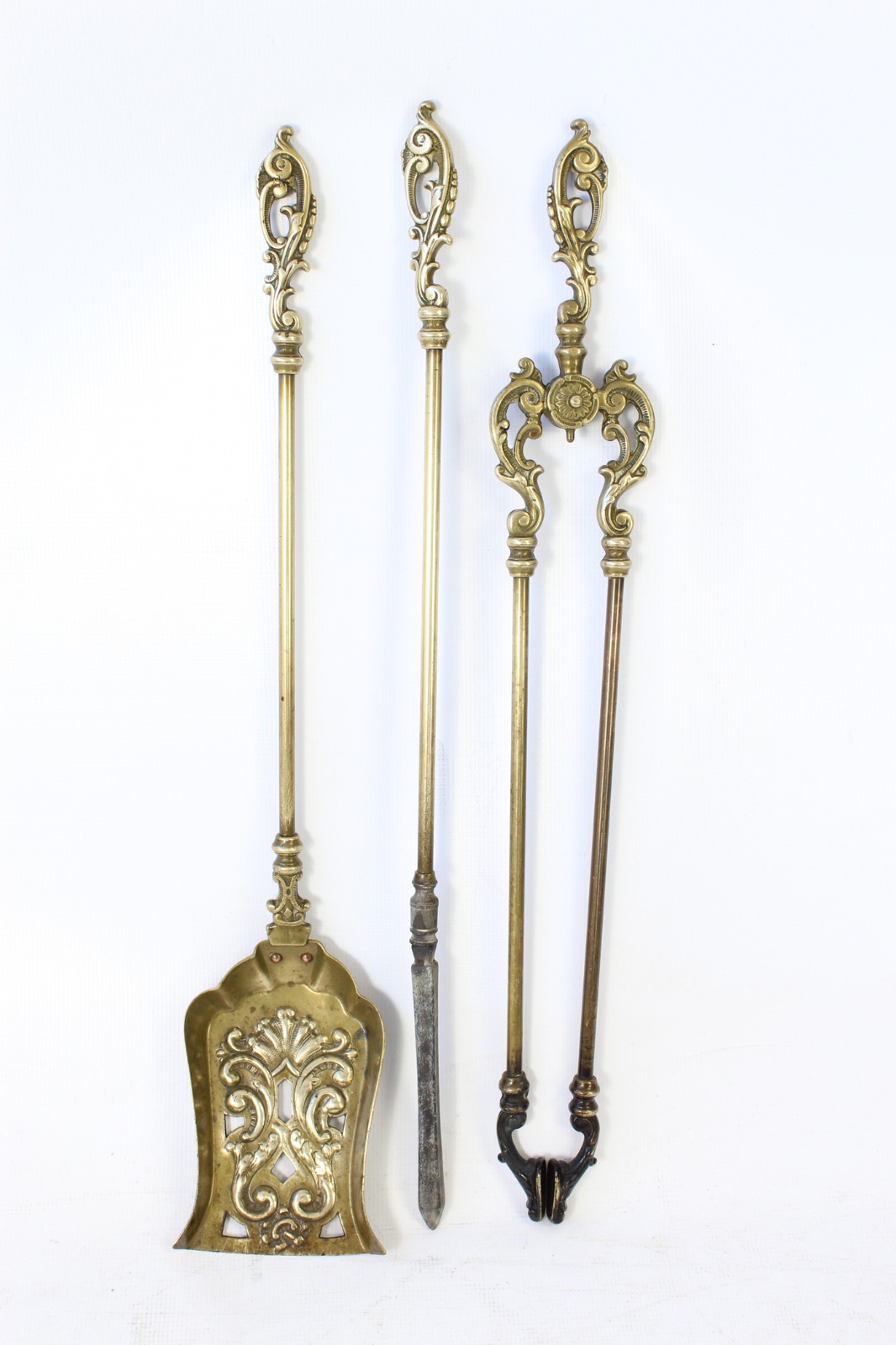 Set of Antique Victorian Brass Fire Irons (1 of 1)