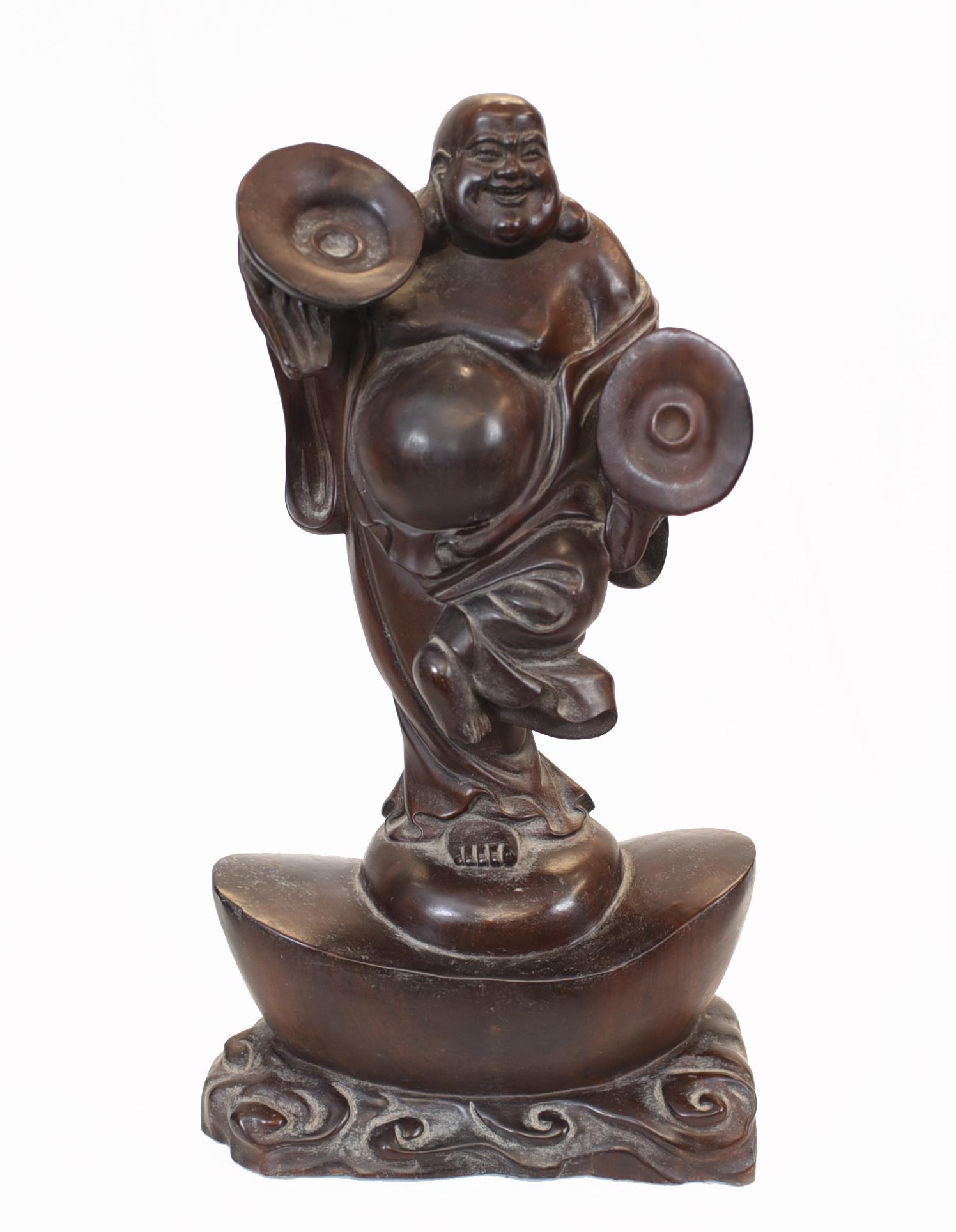 Set of Carved Chinese Buddha Statues Hardwood Figurine c.1930