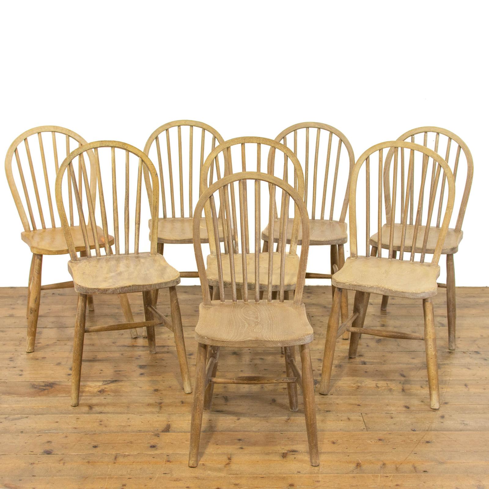 Set of Eight Antique Pine Kitchen Chairs