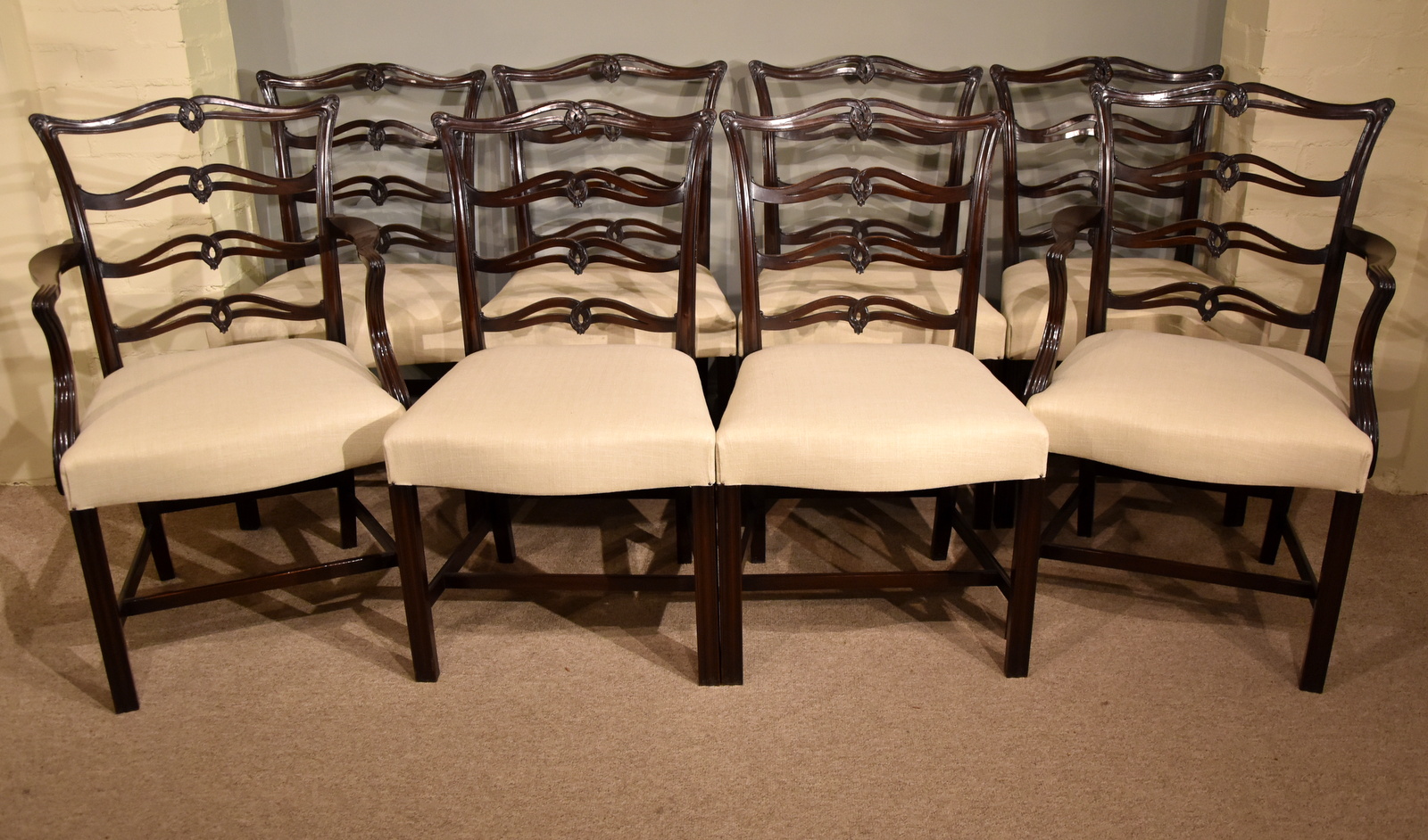 Set of Eight Dining Chairs Chippendale Style