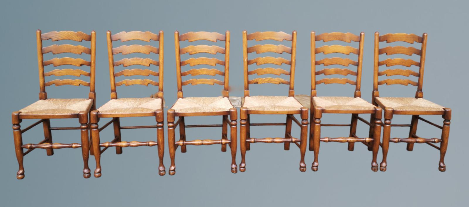 Set of Eight Elm Rush Seat Ladder Back Dining Chairs (6+2)