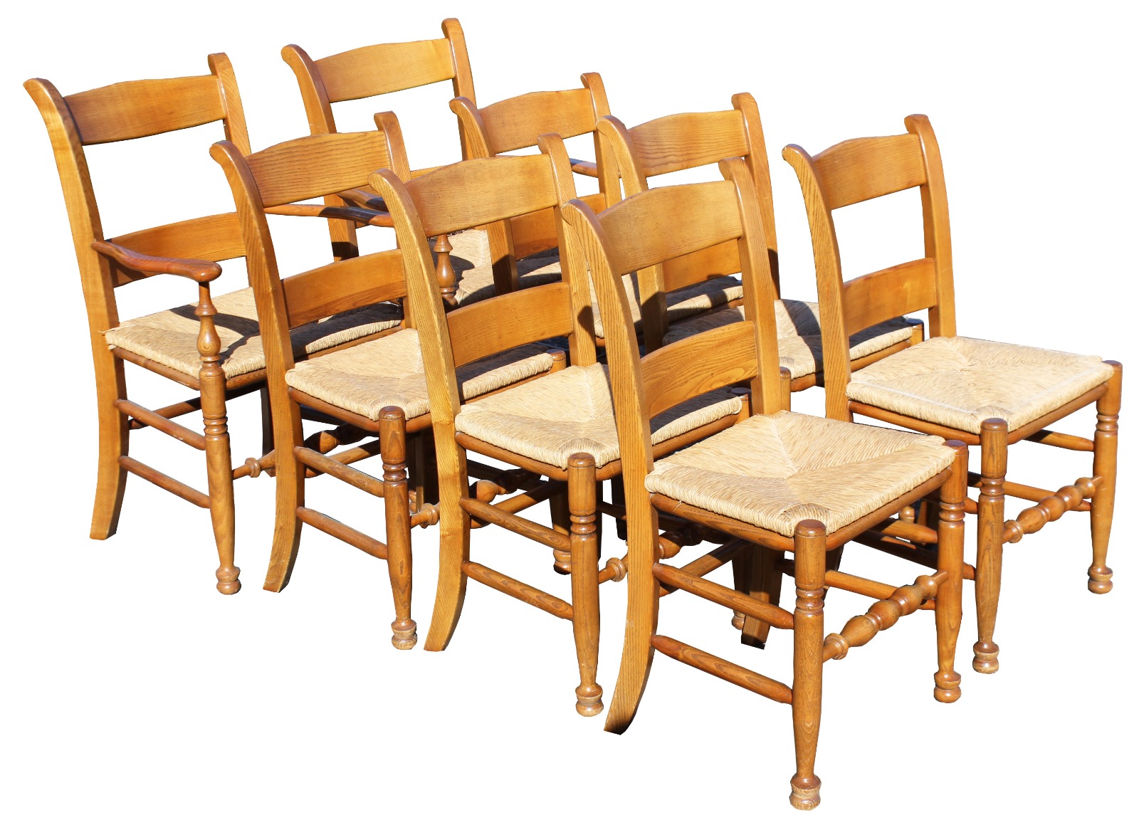 Set of Eight Farmhouse Style Dining Chairs in Elm