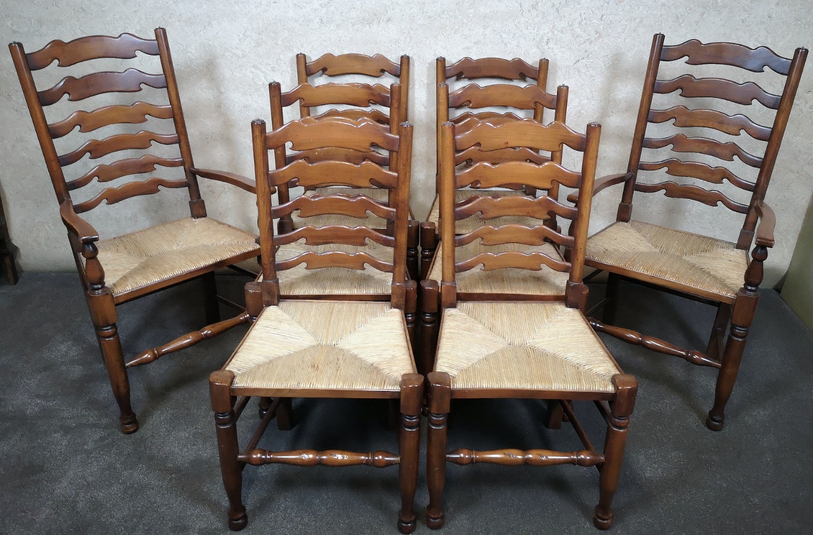 Set of Eight Fruitwood Country Ladder Back Chairs (1 of 1)