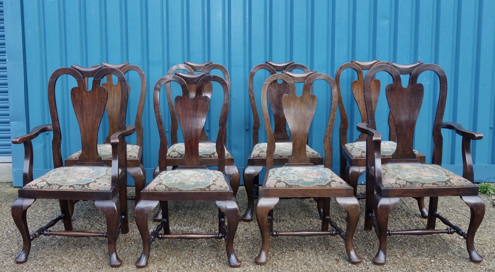 Set of Eight Heavy Oak Dining Chairs