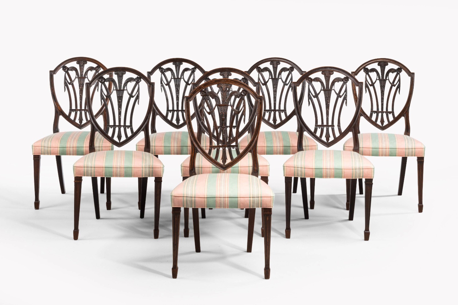 Set of Eight Hepplewhite Design Mahogany Framed Chairs
